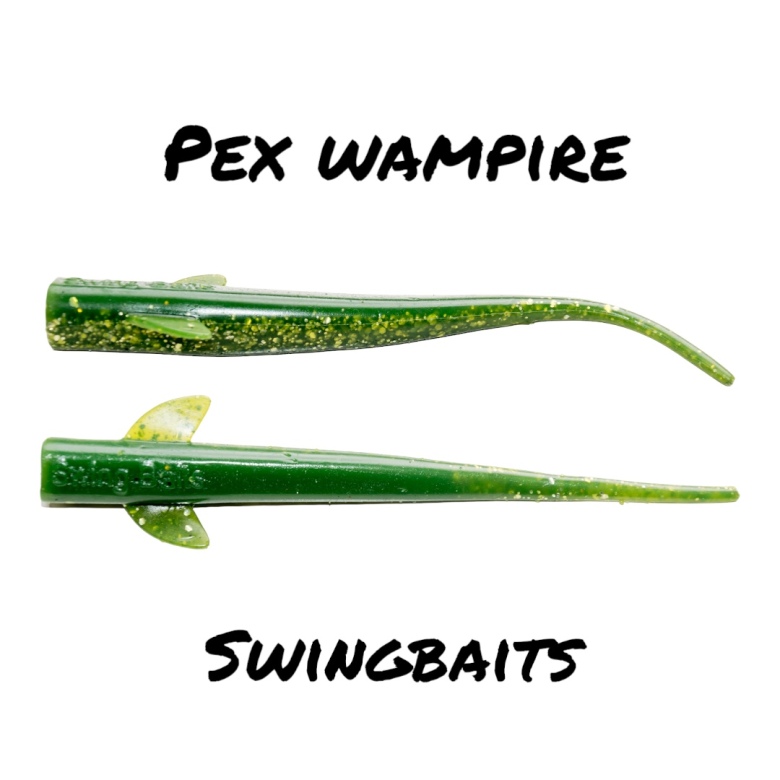 Pex Wampire jiggen. Är baserad på den omtalade vertikaljiggen masken, som är 17cm lång med en special färg framtagen i samråd med Pexfish, samt att den kan förses med en rasselkammare i tailen. PexWampire jiggen Night är svart på ryggen